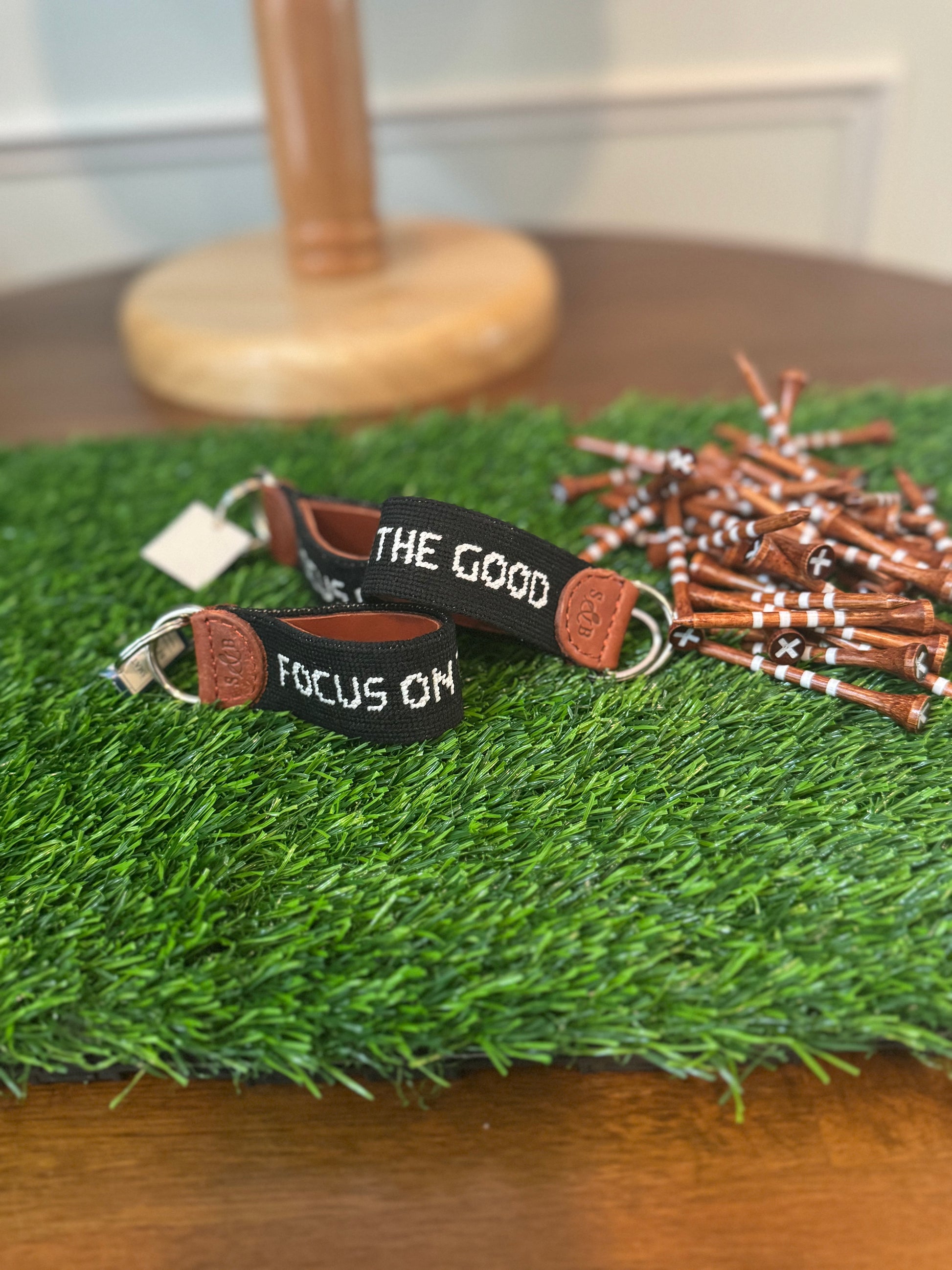 We've partnered with Smathers & Branson, the needlepoint professionals, to create this everyday piece. Finished with Italian leather and hand-stitched with the reminder to keep your eyes and mind focused on the positive things happening around you.